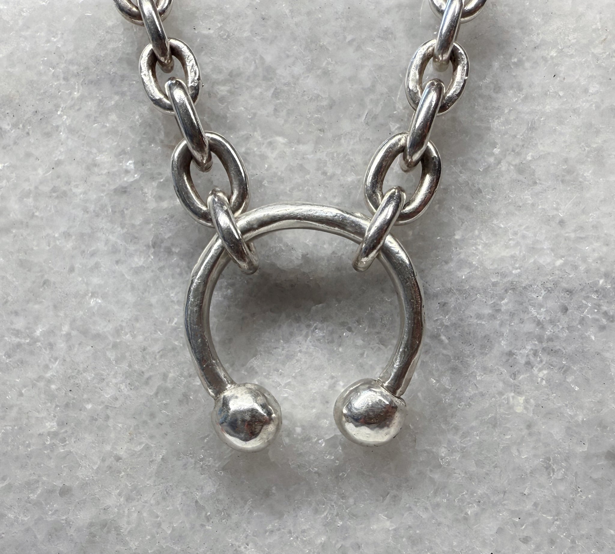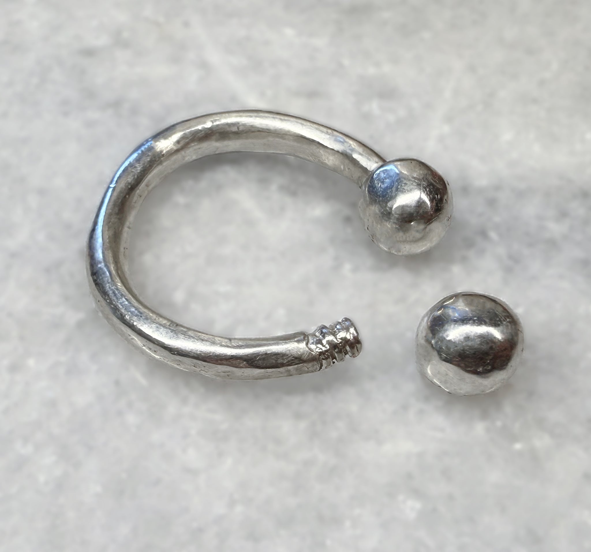 The multifunctional pierced ring made in solid sterling silver. Featuring a twist off end ball to turn it into your favorite necklace with the option of adding your favorite charms